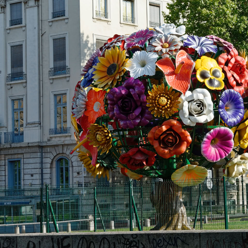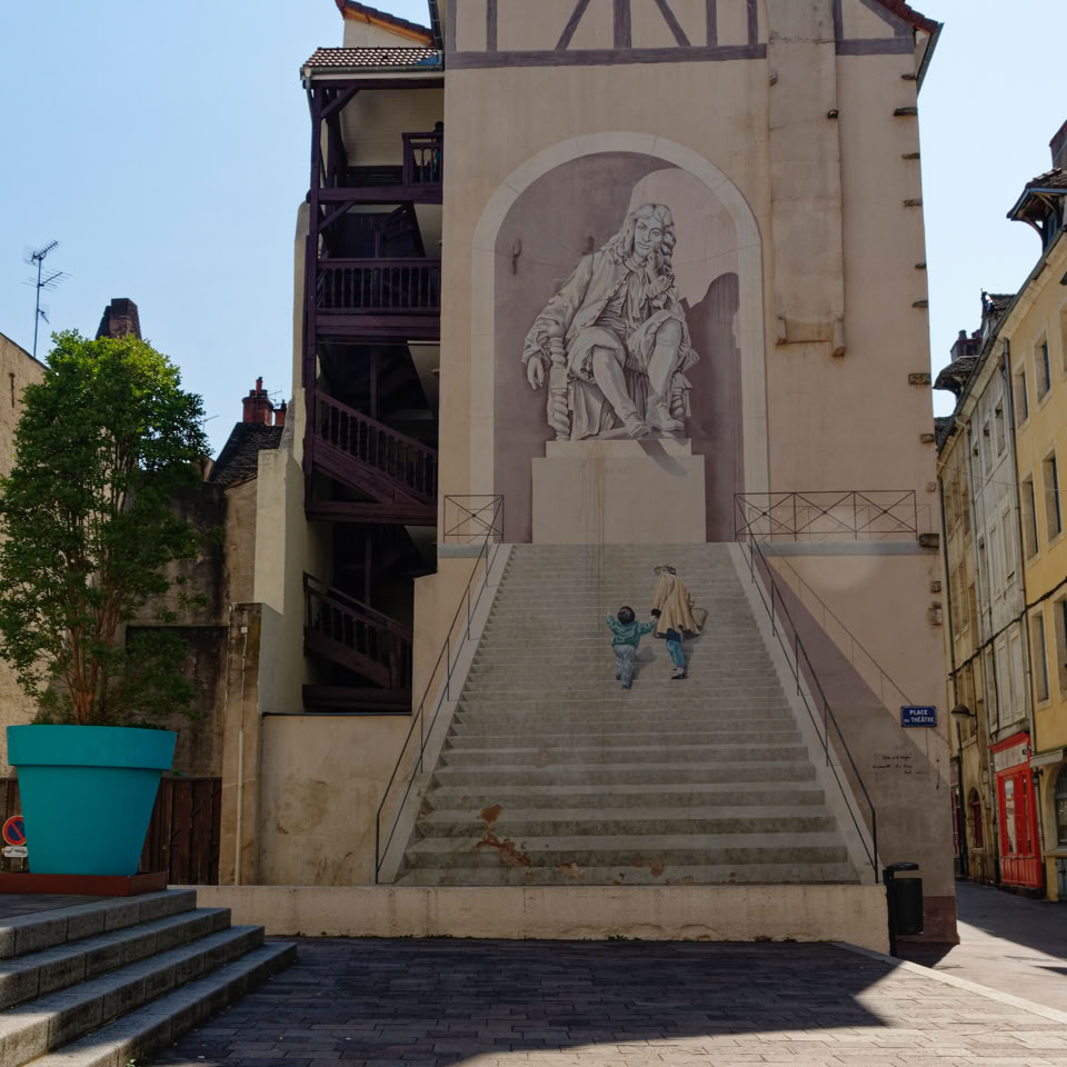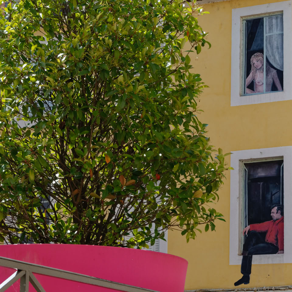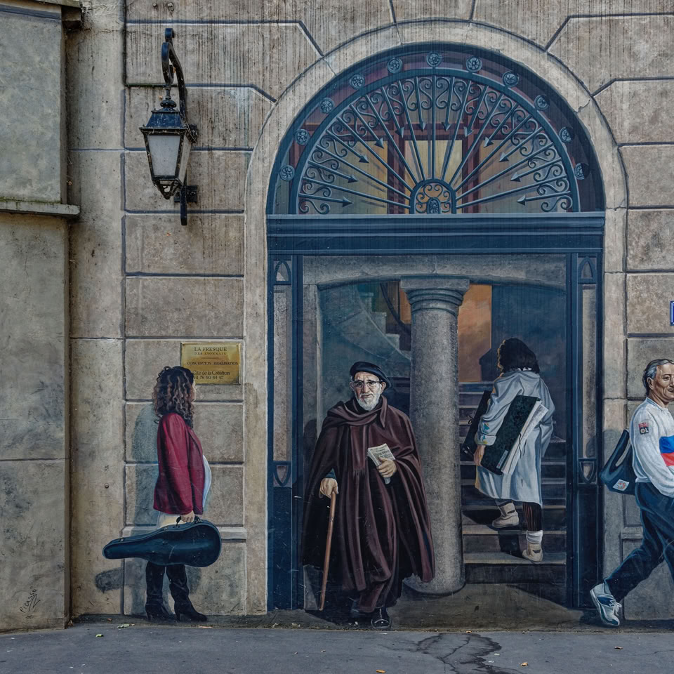 An interesting feature of Lyon is an excellent idea for dealing with uninteresting blank concrete walls at the ends of buildings. They paint a mural of windows on them. Street art on steroids! Really good!