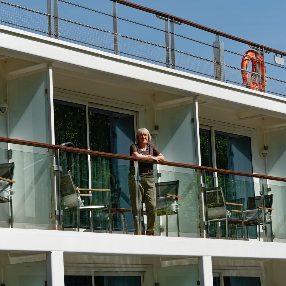 Once again, impeccable service from KLM and Viking saw us on to the ship before 2pm. Checked-in bags delivered and off to lunch by 2:05pm - on the sunny deck!!