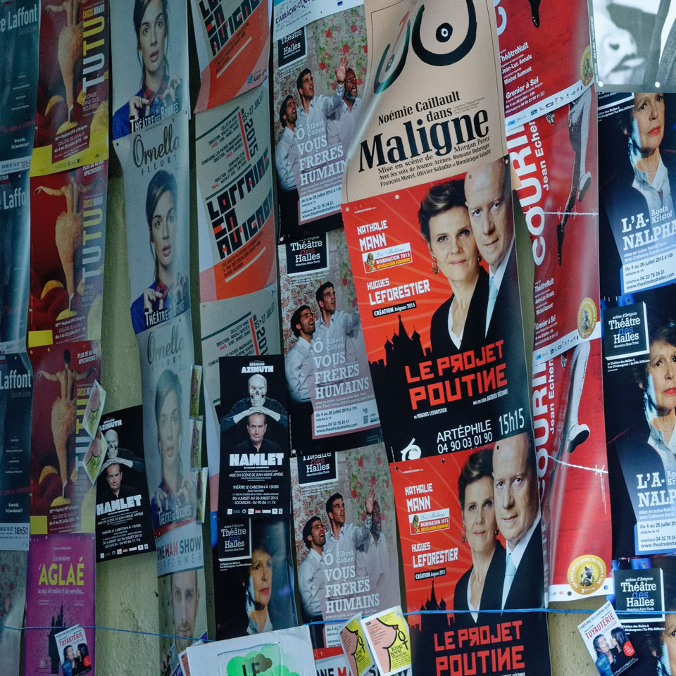 The only complaint about the town is that it’s holding a theatre festival (I suppose a little like Edinburgh) but in typical French style, they allow the walls, trees and anything else that doesn’t move to be plastered with posters advertising various productions. It makes an absolute bloody mess of the place!