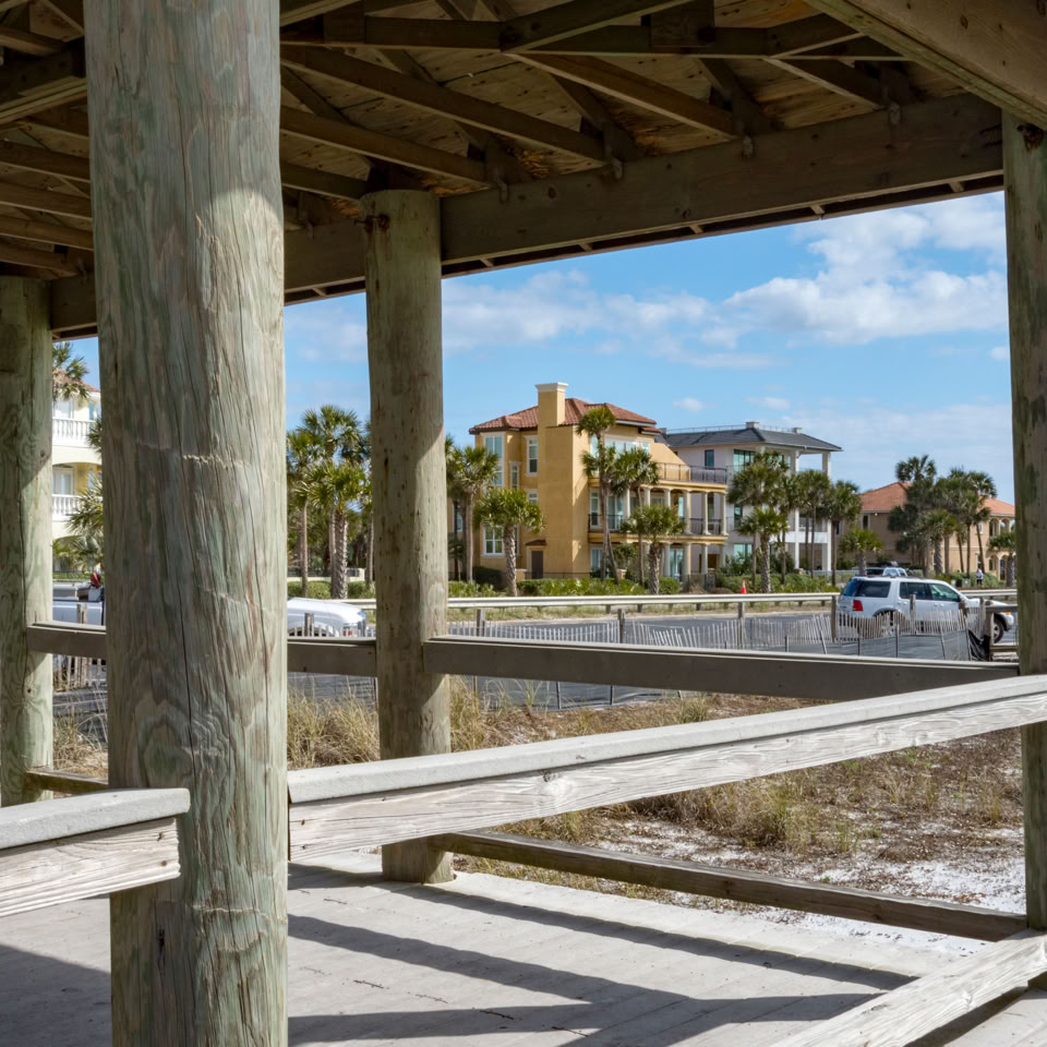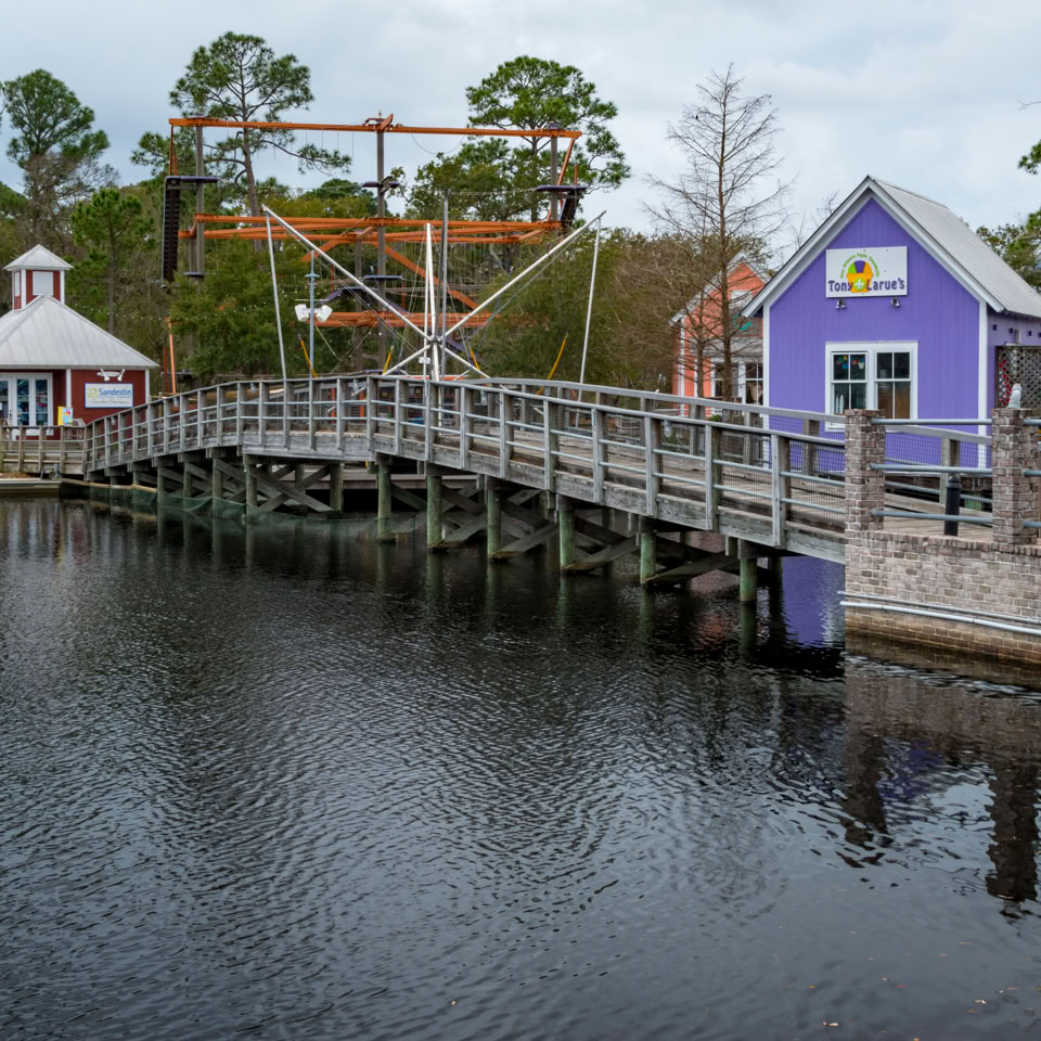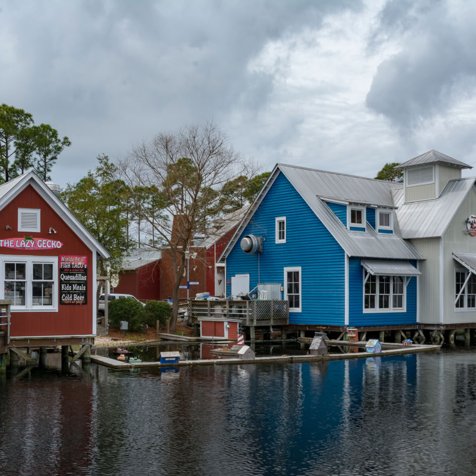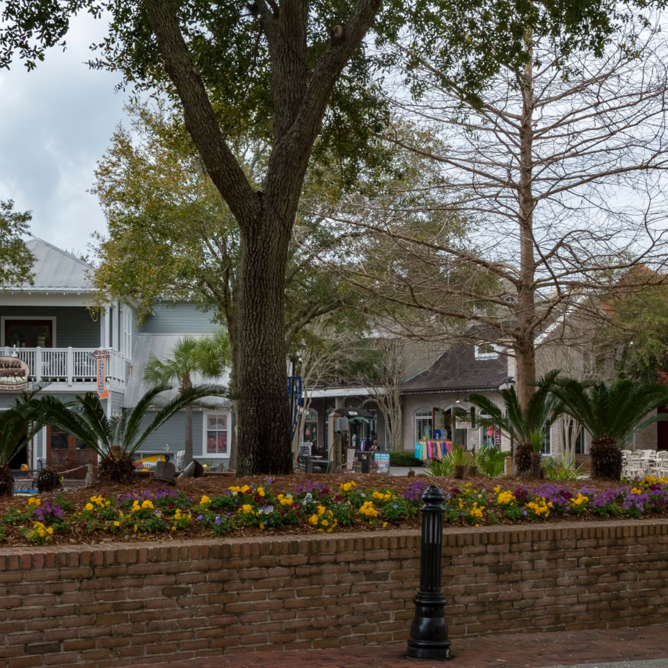 Visited a gated community, called “Baytowne” today (Miramar Beach area). This place has controlled entry where you have to check-in and pick up a car sticker. Inside there’s some lovely properties around lakes and golf courses. The shopping area on the Bay reminded me of a theme-park without the rides. Best described as Shabby-chic. Built to look old.Â