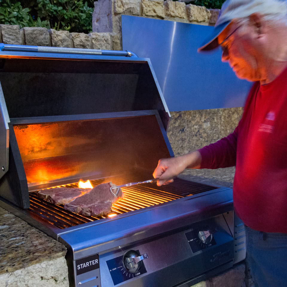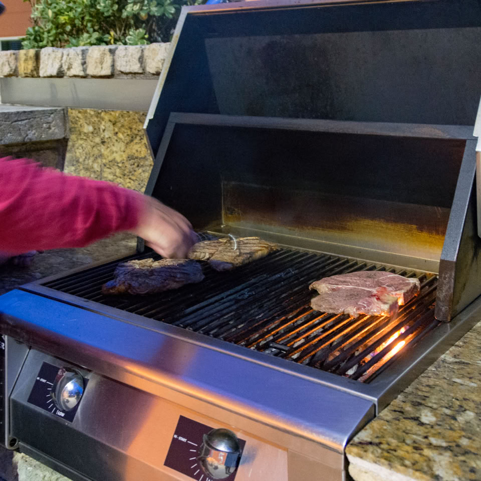 Our host, Dave, barbecued what appeared to be whole cows for dinner. T-Bones, Idaho potatoes, creamed corn, key lime pie and red wine.