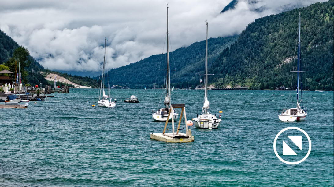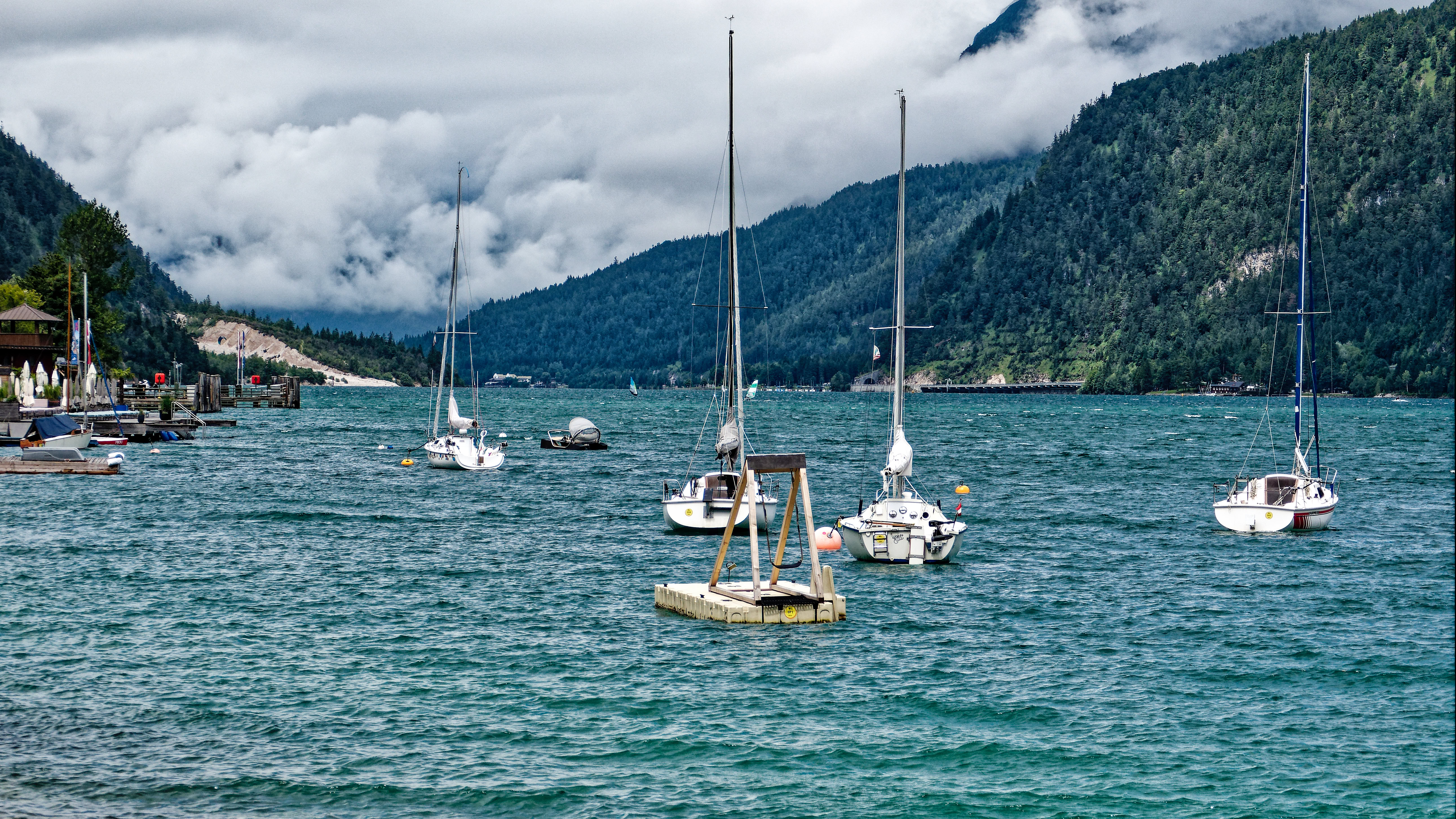 When we set off for Achensee it was pouring down with rain. To be honest, a change is as good as a rest. It actually felt nice to feel at little bit chilly. We arrived in Pertisau am Achensee just before 12 noon with time for a stroll around. Still raining, more lightly, our proper raincoats came down from the overhead rack; so glad we’d brought them.