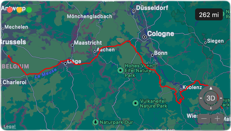 We left Neiderhausen for our journey to Wavre near Brussels with a stop in Boppard, a town on the Rhine. The stop included an optional river cruise lunch; we’d opted out. This meant we had around 4 hours to kill in a town with little to commend it. After a stroll around town and along the walkway beside the river, it began to rain, serious rain.