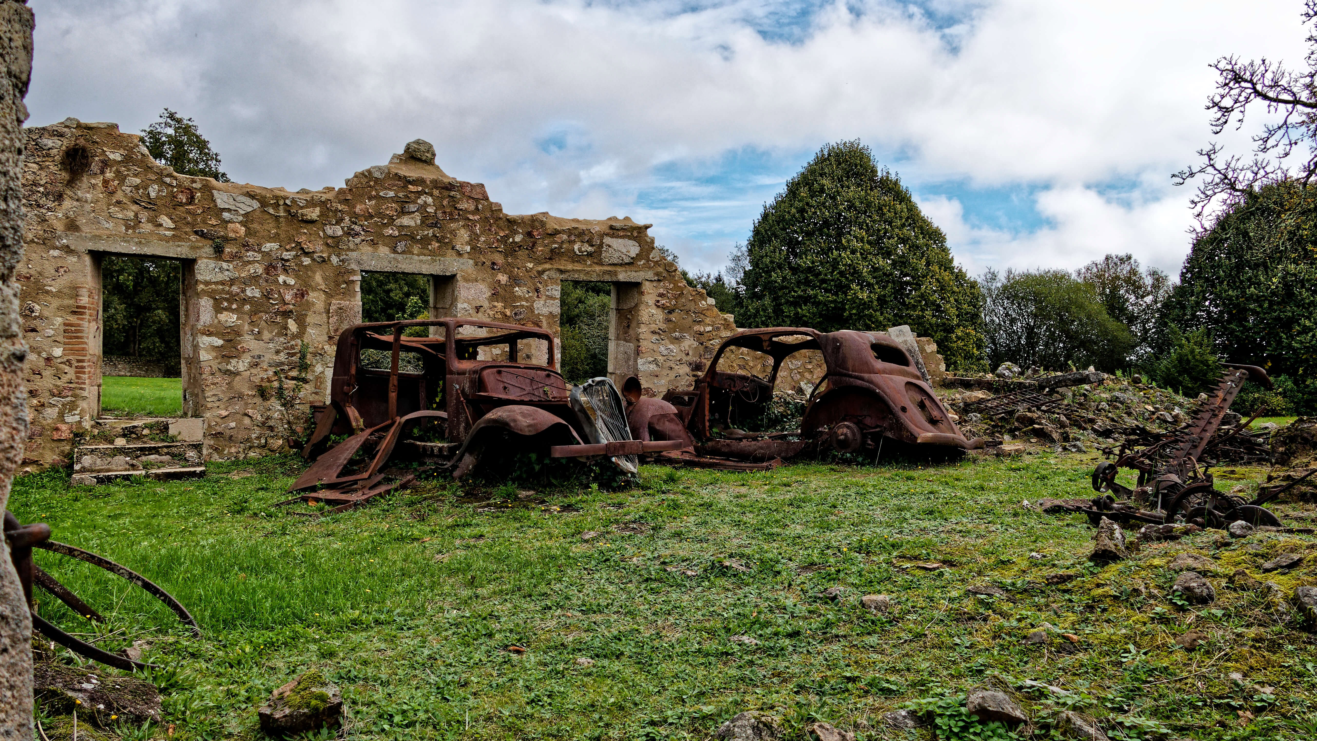 An 08:00 departure began our 4 hour journey to Oradour-sur-Glane, the site of one of the most vicious Nazi atrocities of WWII, where the entire population of the village was murdered and the buildings destroyed. It has been preserved as a memorial.